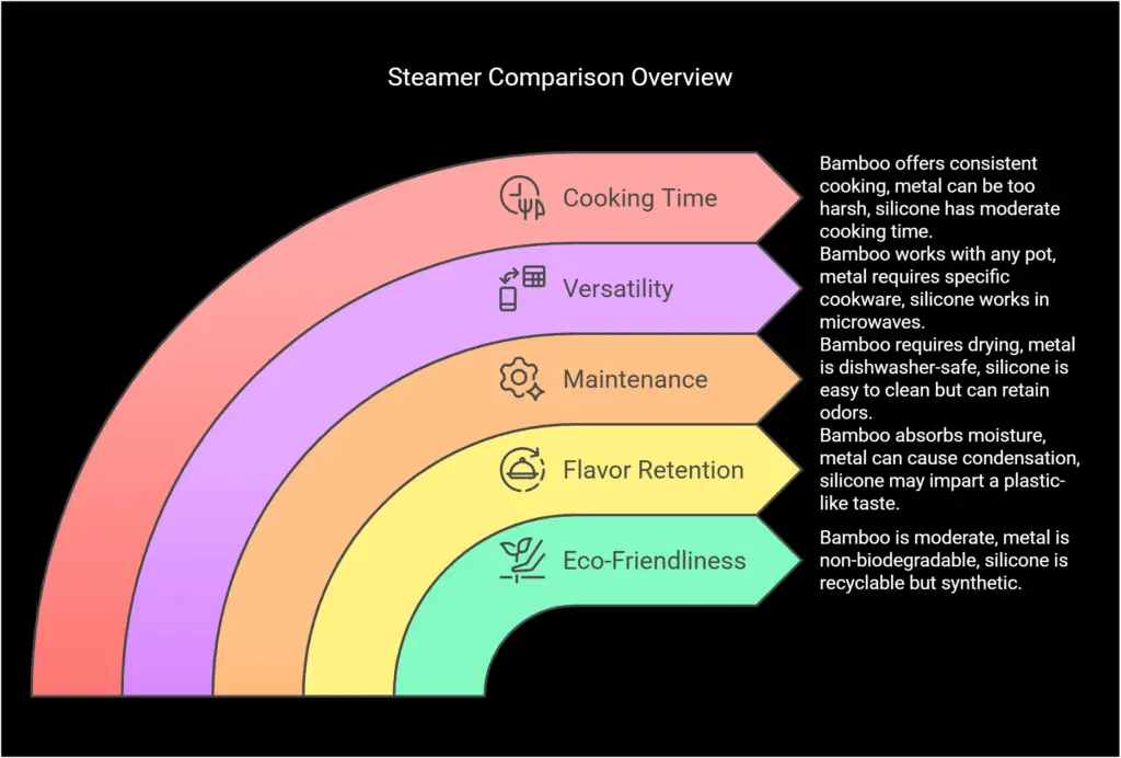 What really impresses me about bamboo steamers is how flexible they are. These eco-friendly steamers are now popular outside of Asia, especially among health-conscious cooks and people who care about the environment. Does bamboo grow quickly? up to 35 inches per day? It requires no chemicals or extensive labor to produce, making it an environmentally friendly option. As recyclable choices to metal or plastic steamers, they are popular with people who want to eat healthy, tasty food while also being good for the environment.