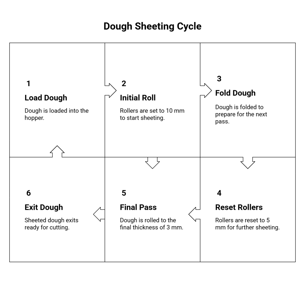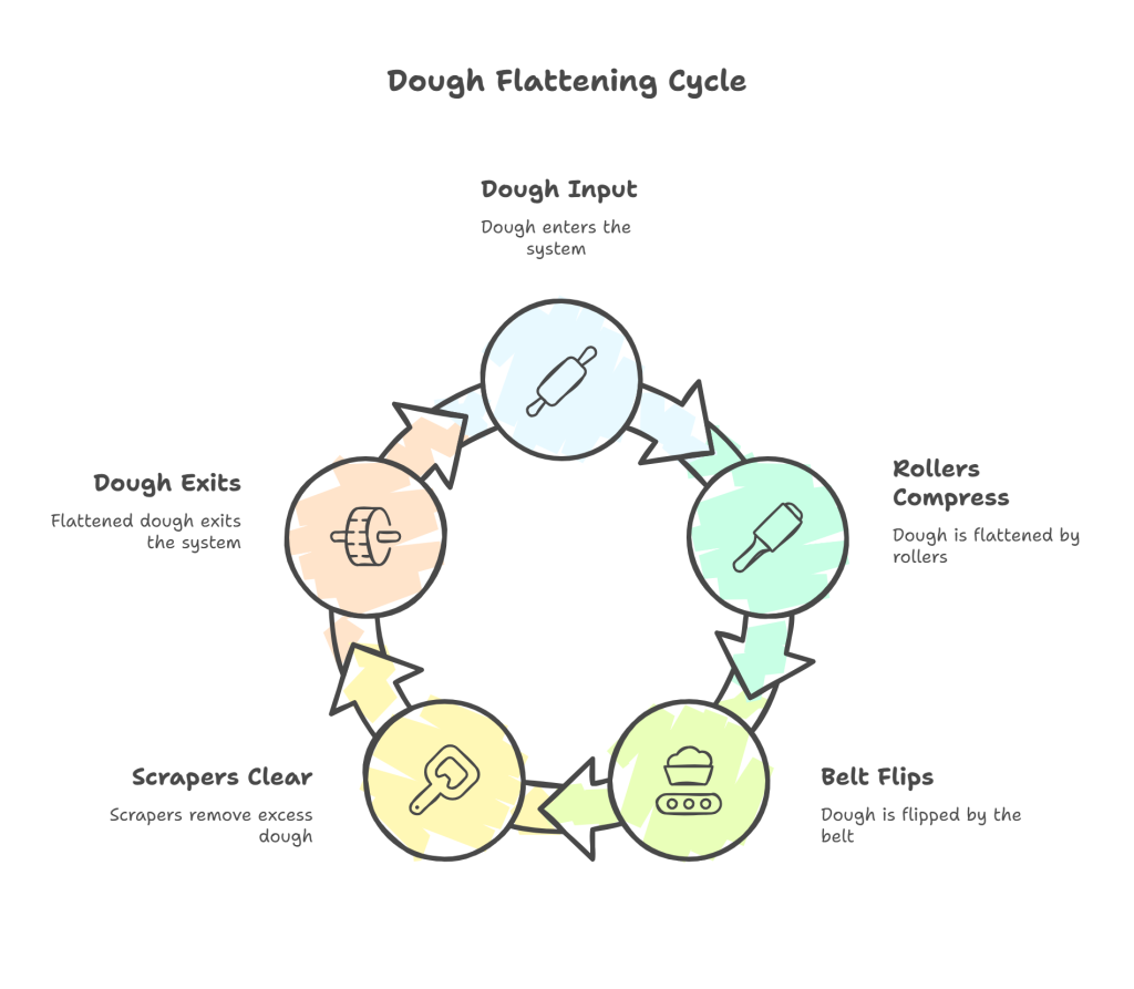 - Throughput. A floor-standing reversible sheeter can process up to 600 lbs of dough an hour. The belt runs forward, then backward, so the operator never lifts the dough—ideal for 18-layer Danish dough or New York–style pizza bases.