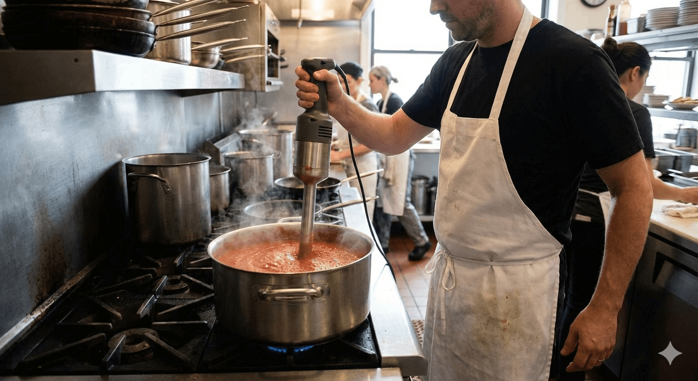 For blending soups or emulsions, immersion blenders like the Dynamic DL2444 (12-inch, $350) pack 600 watts and tackle gallons effortlessly. They’re lightweight, so your staff won’t tire out.