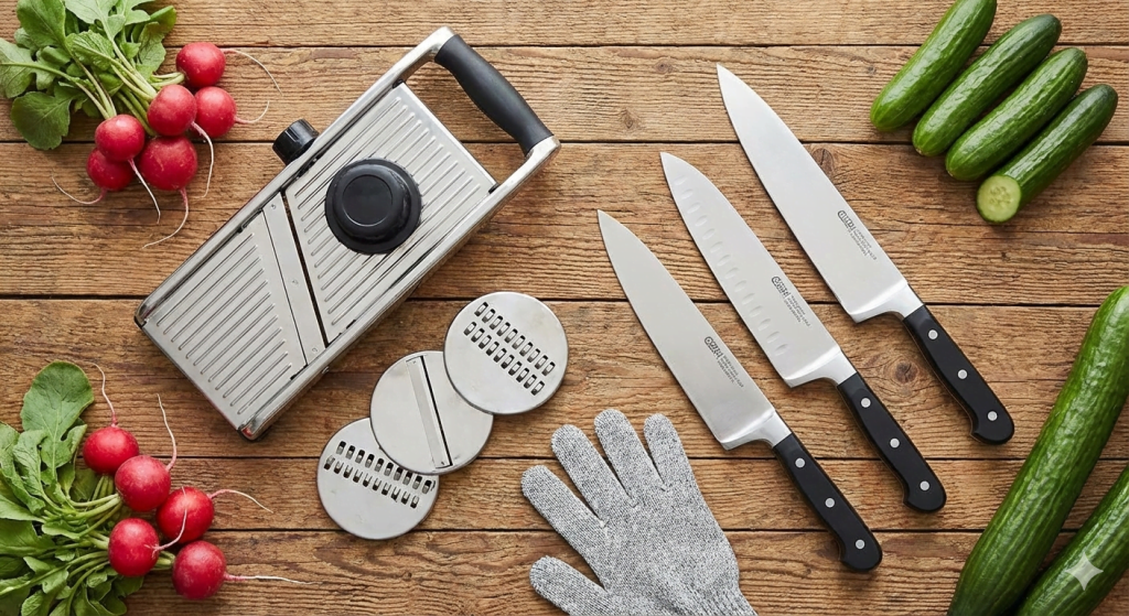 | Mandoline | OXO Good Grips | $30-$50 | Handheld precision | Adjustable cuts |